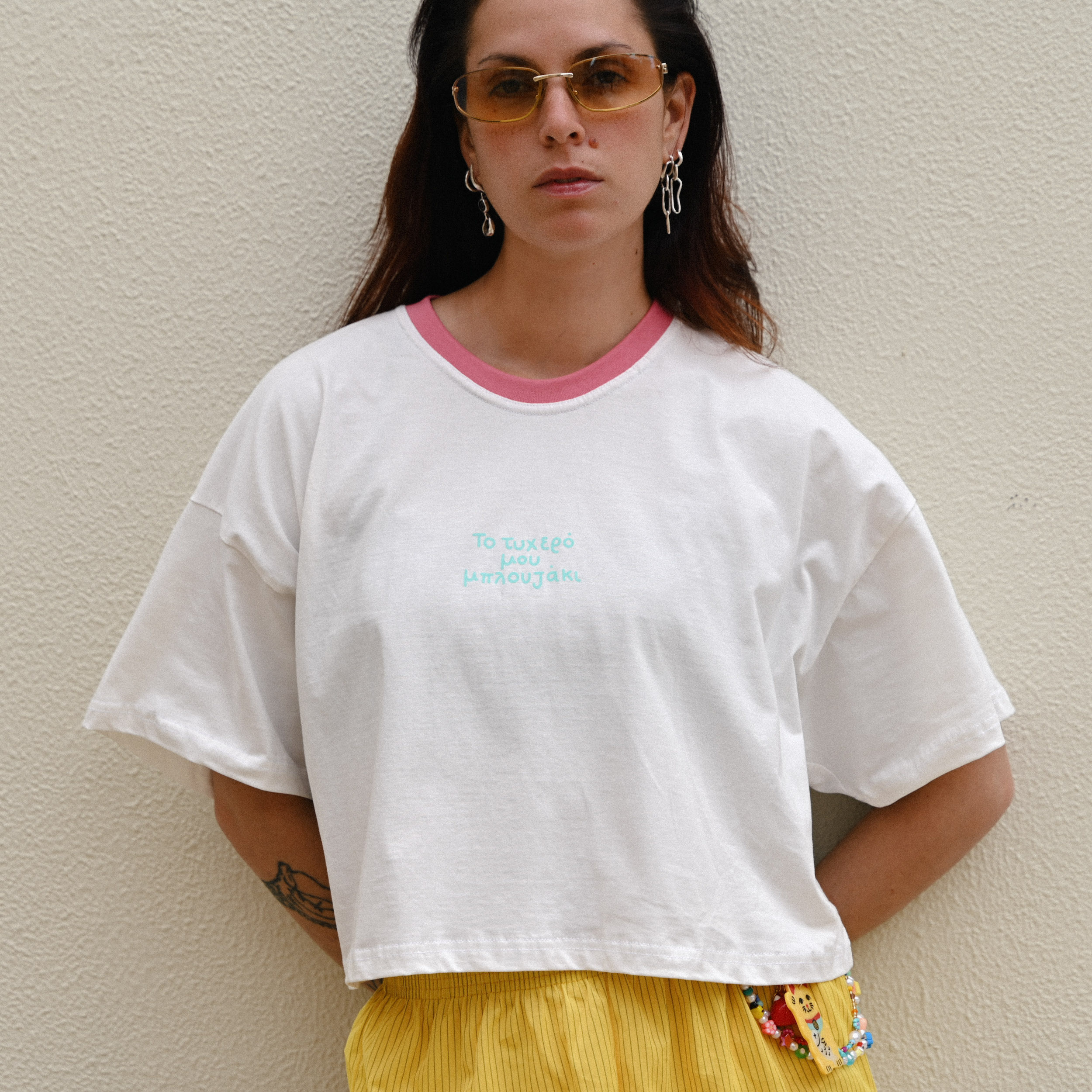 Το τυχερό μου Μπλουζάκι White Oversized Crop