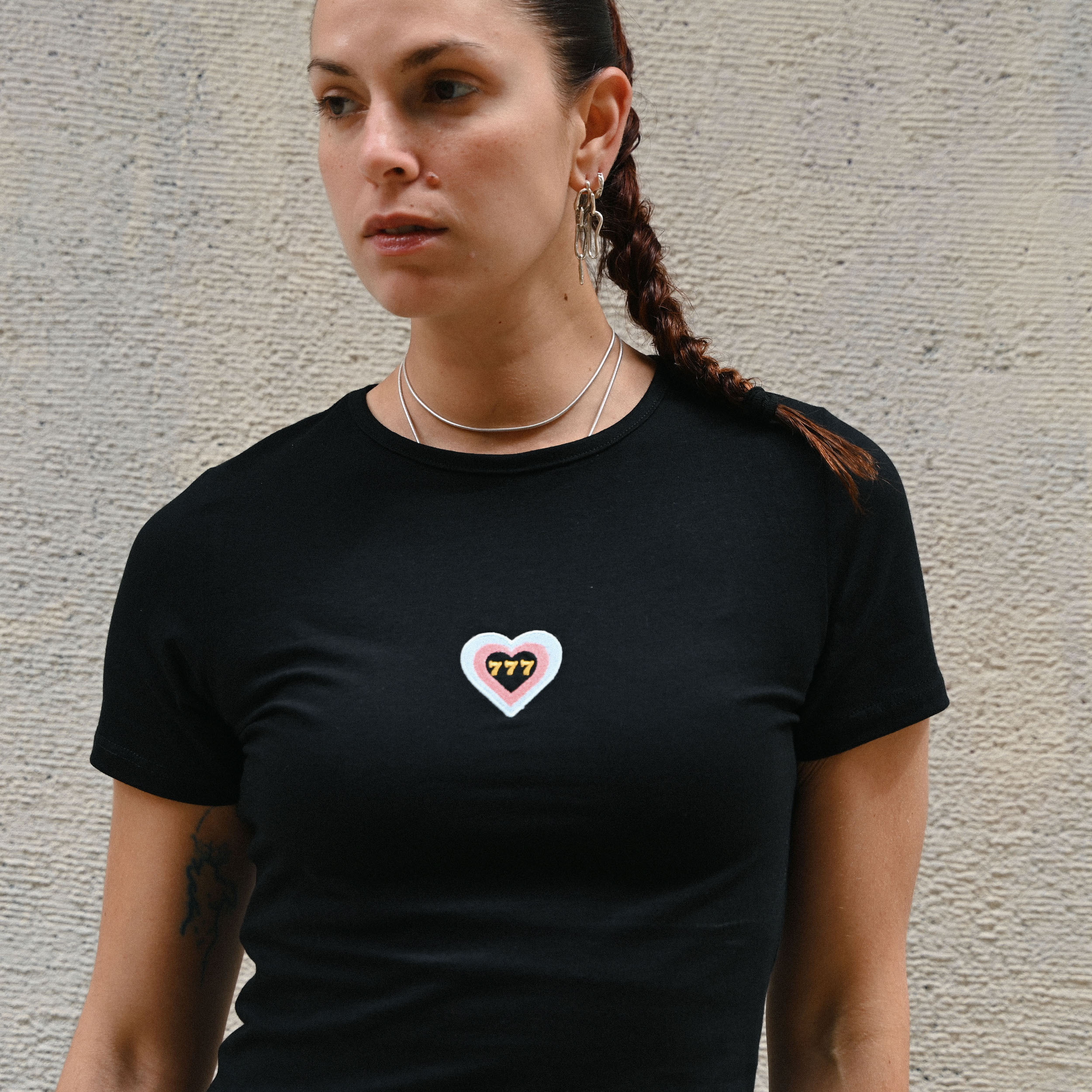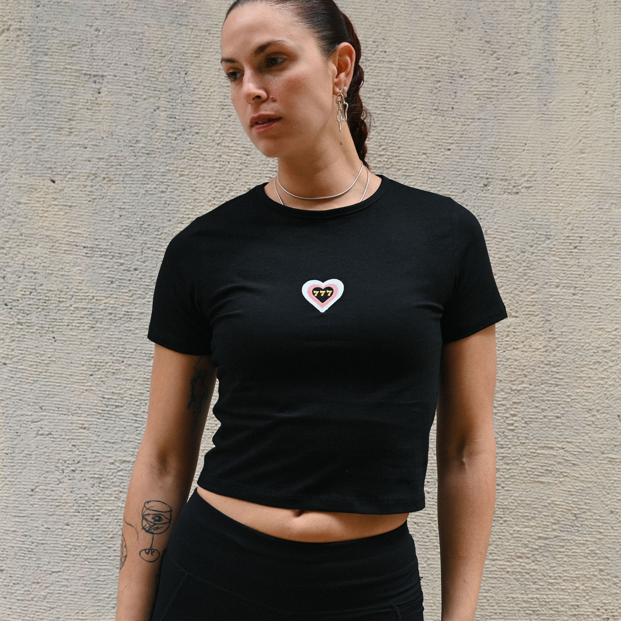 Lucky 7 Baby Tee in black