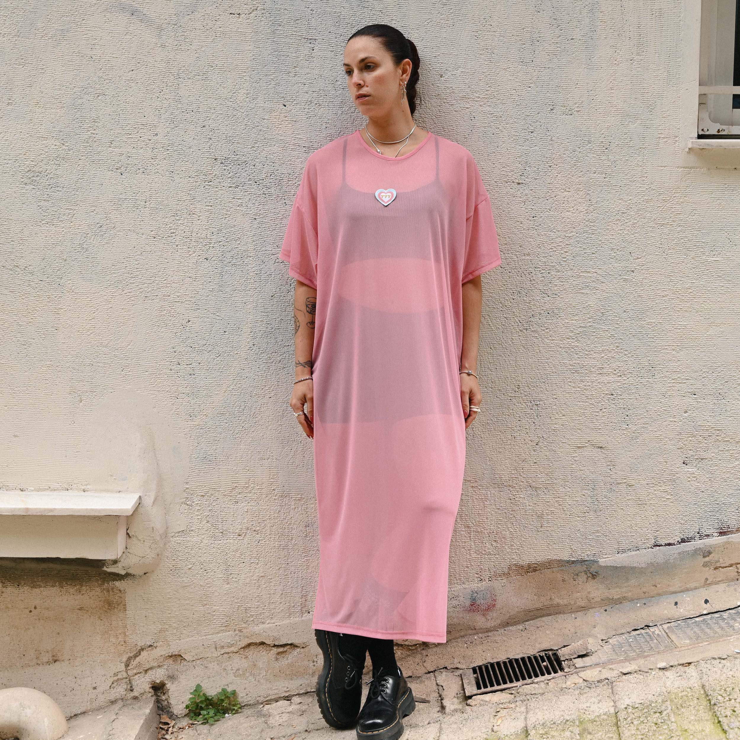 Mesh Maxi Dress in pink